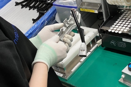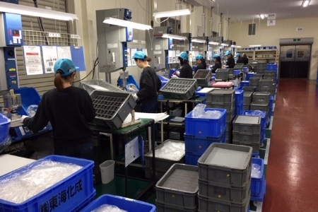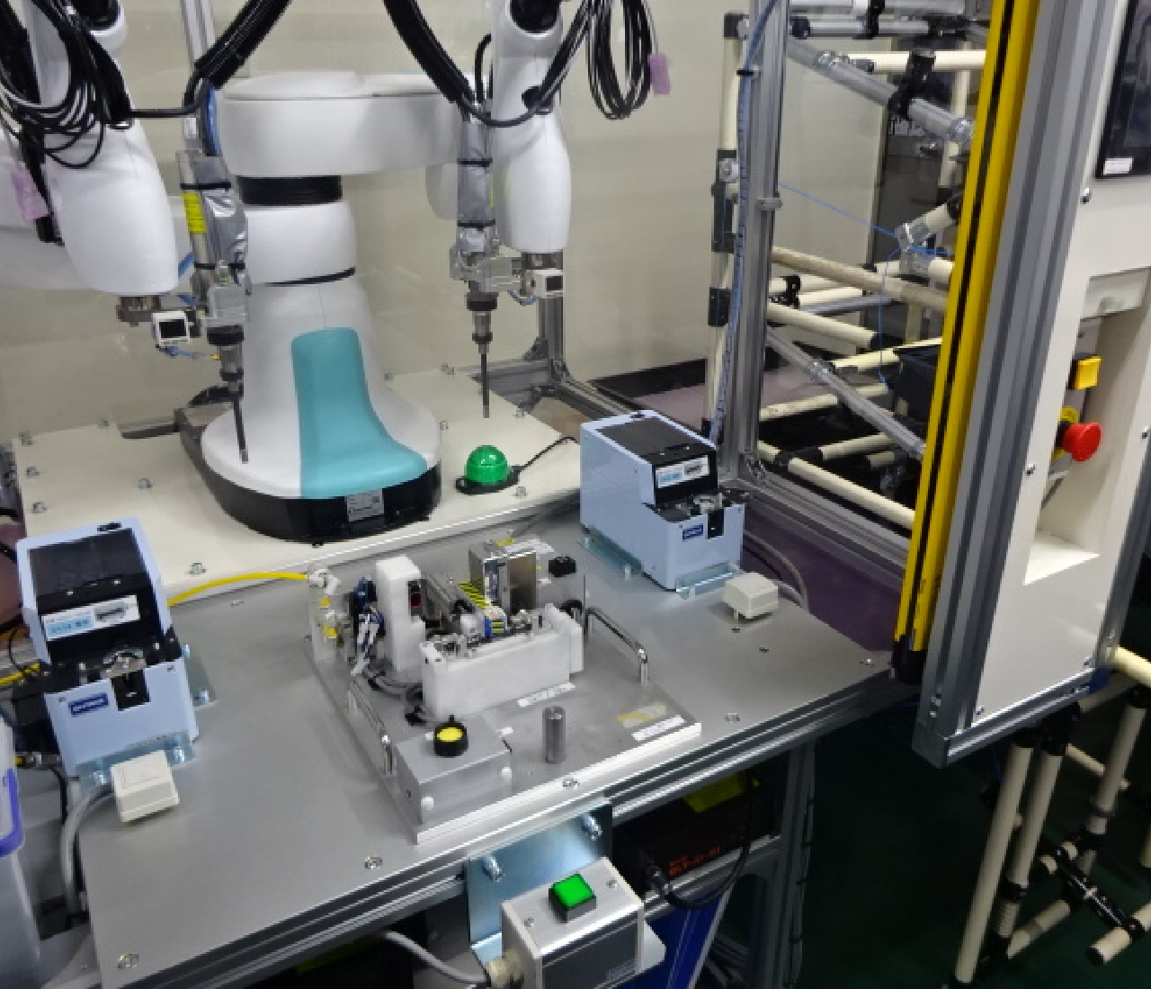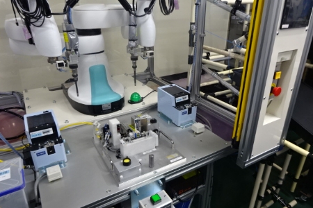 協働ロボットを導入し、人とロボット作業を協働することで効率的な生産をおこなっています。製品特性に合わせて溶着設備を使い分け、ランプを組み上げます。からくり改善を推進し、エコで持続可能な工程作りに取り組みます。